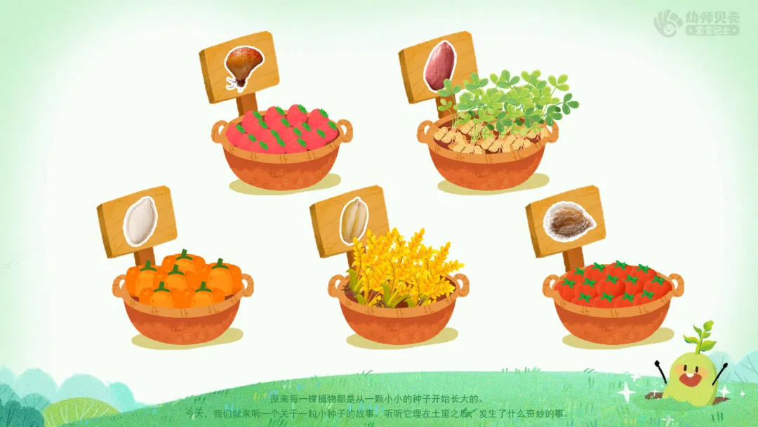 ——原来每一棵植物都是从一粒小小的种子开始长大的。今天,我们就来听一个关于一粒小种子的故事。听听它埋在土里之后,发生了什么奇妙的事。