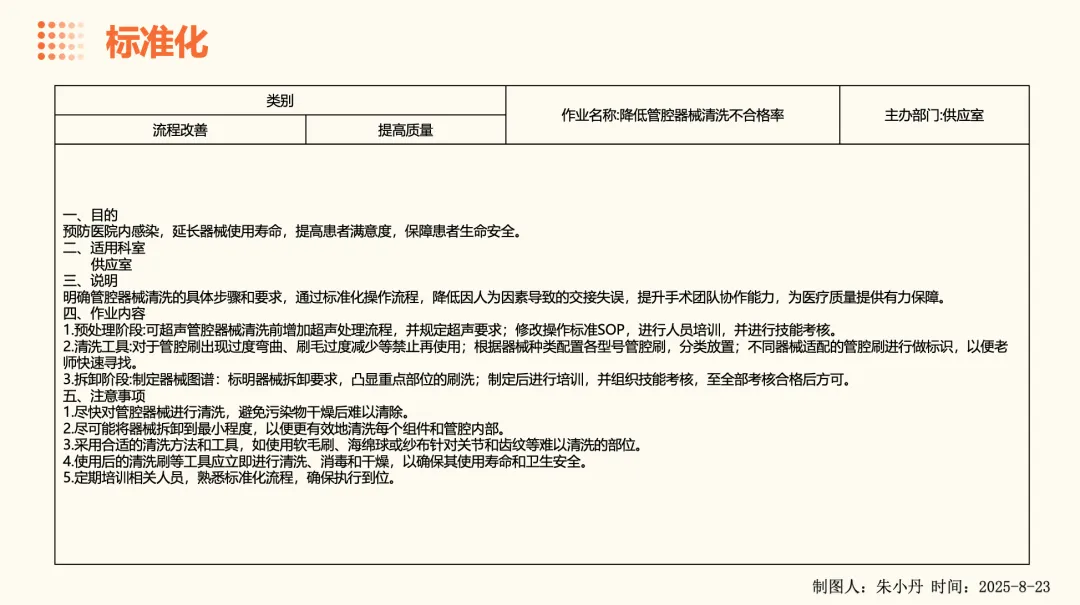 投稿课件——PDCA持续改善案例《降低管腔器械清洗不合格率》