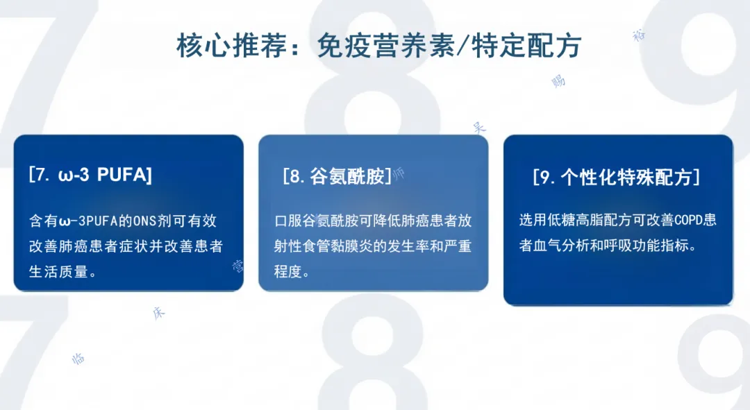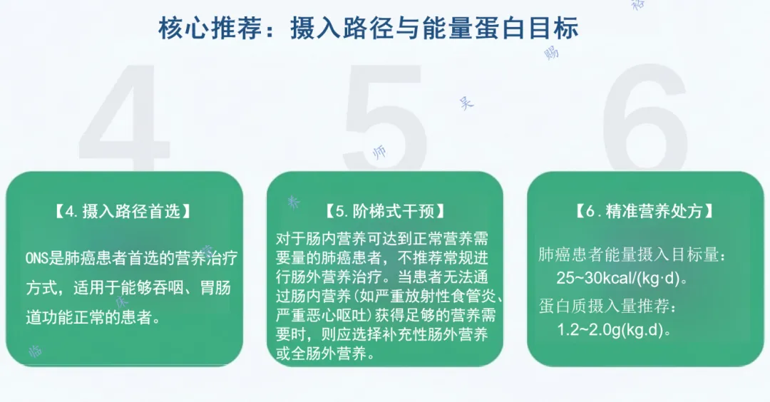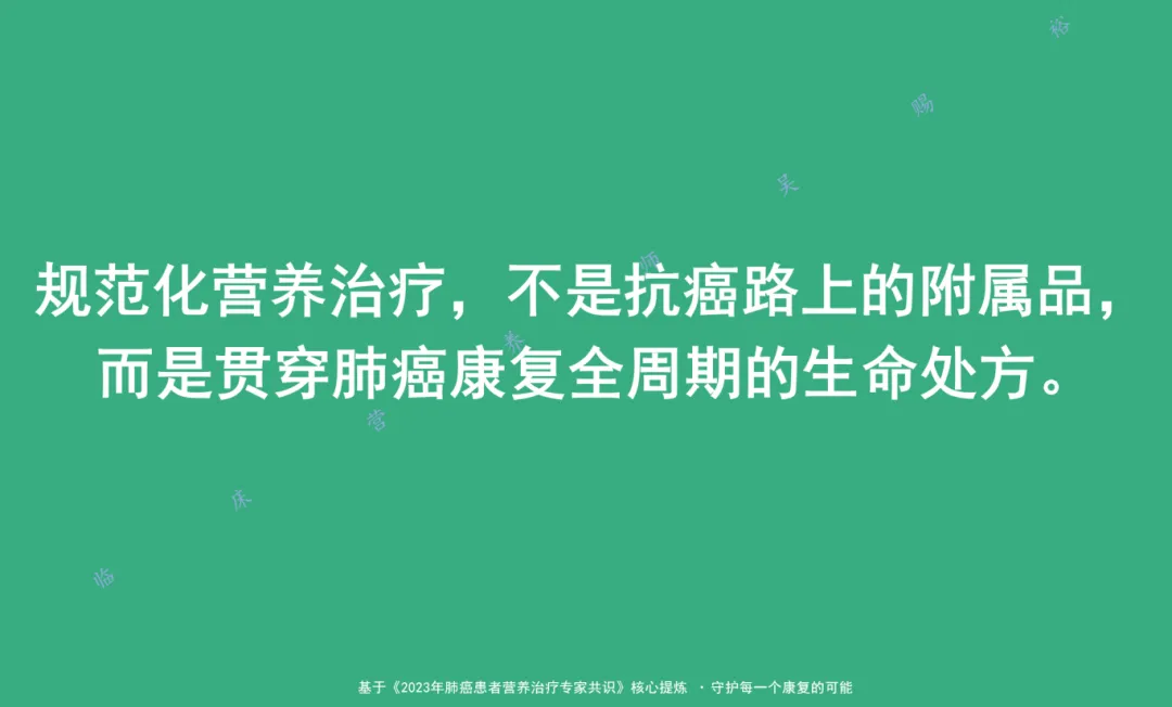 参考文献:[1]中国抗癌协会肿瘤营养专业委员会,中华医学会肠外肠内营养学分会.肺癌患者的营养治疗专家共识[J].肿瘤代谢与营养电子杂志,2023,10(03):336-341.DOI:10.16689/j.cnki.cn11-9349/r.2023.03.006.
