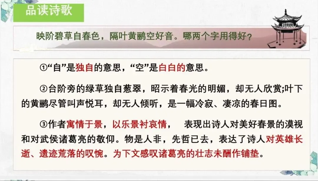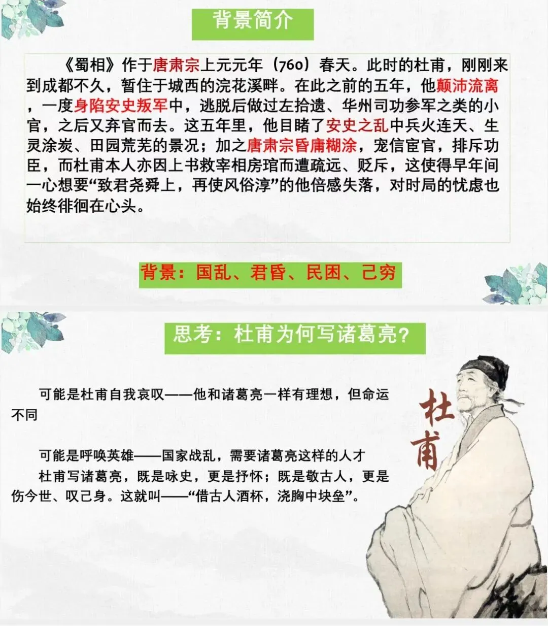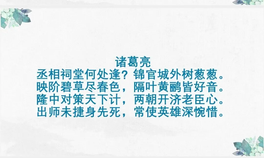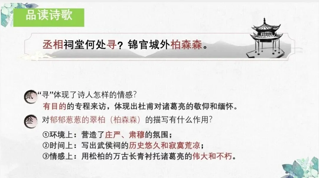 备《蜀相》时,我原本准备了一套很完整的课件:知人论世、咏史怀古诗特征、逐句精讲、情感主旨、比较阅读……