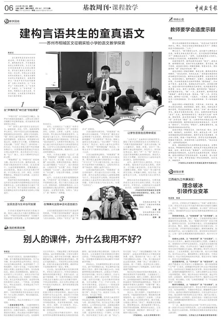 我认为,别人的课件,只能用作教学中的参考,不能直接拿来使用。哪怕教师打算借鉴使用,也一定要进行二次备课、三次备课,尝试融入自己的教学理念、教学风格,实现他人课件的“我化”。课堂教学没有捷径,要想课堂出彩,教师就需要下笨功夫,持续开展深度备课。教师的专业成长,正是在“深度备课—课堂教学—课后反思”这一循环中得以实现。