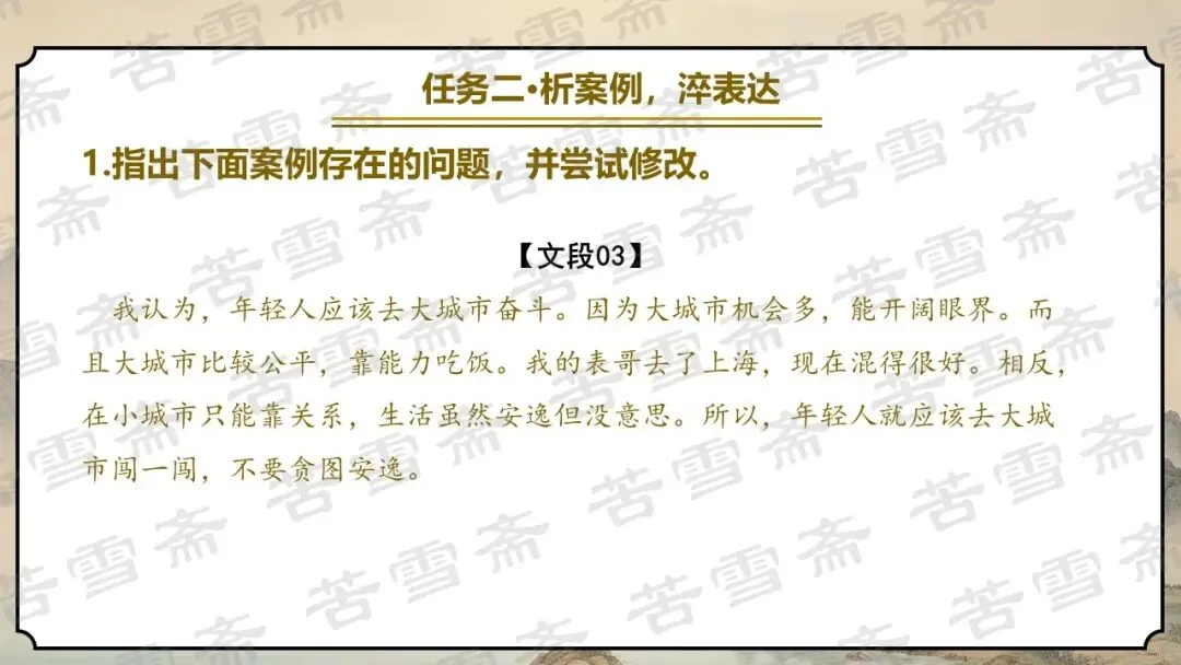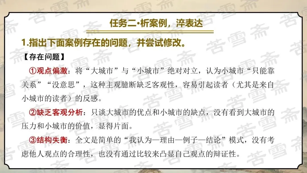 精品课件|部编版必修下册第一单元写作任务《如何阐述自己的观点》教学PPT
