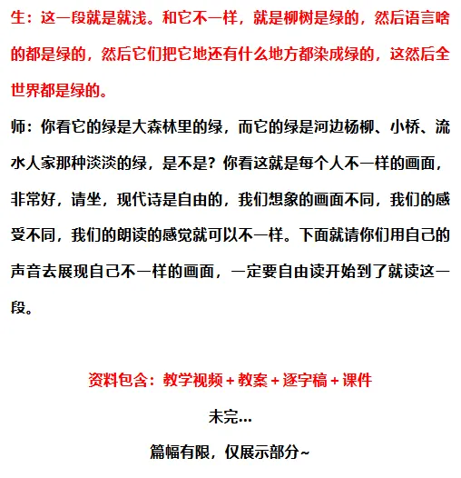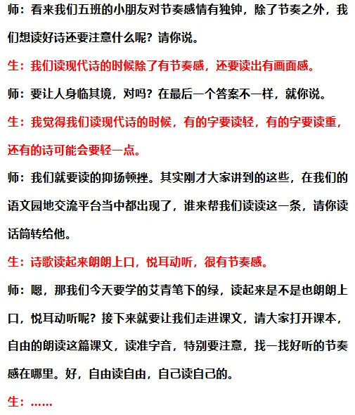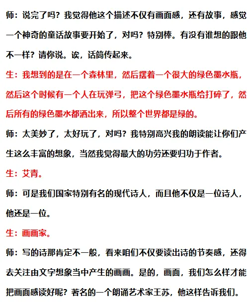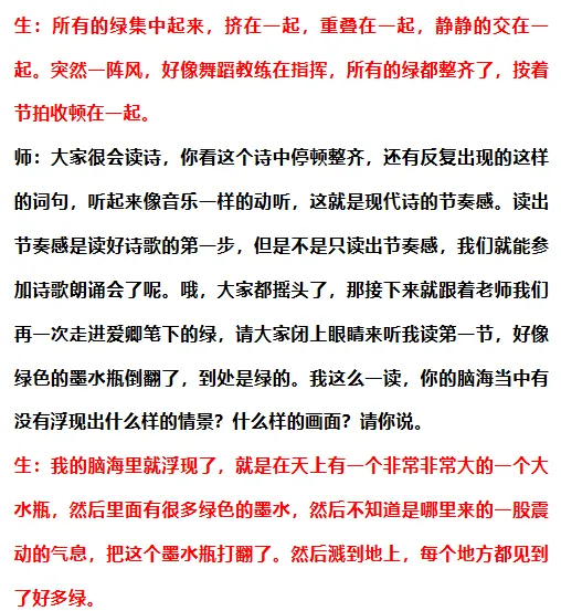 >【新课标优质课】|四下《绿》逐字稿+教案课件+视频|执教:吴老师