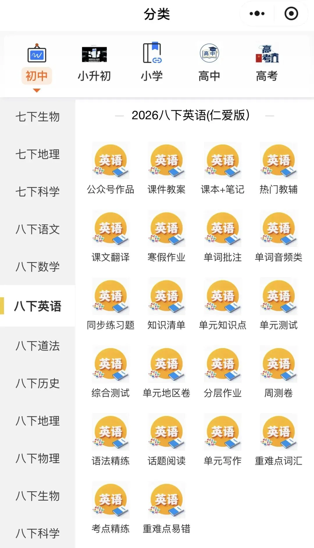 ②:在公众号对话框回复:八年级
