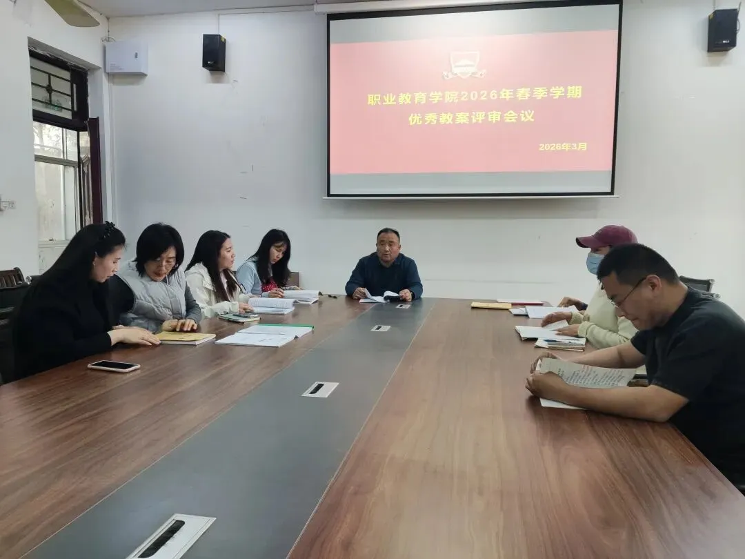 为深入落实学校2026年春季学期优秀教案评选工作要求,强化教学过程规范化管理,充分发挥优秀教案的示范引领作用,切实提升教师教学设计与育人能力,3月25日下午3点,职业教育学院组织开展2026年春季学期优秀教案院内评审工作。本次评审组由学院院长仝其宾、院长助理丁凤、教学秘书胡兵鑫及五位教研室主任组成,评审组严格依照学校理论课与实践课双重评选标准,秉持公平、公正、公开原则完成全部评审工作,最终评选出各级获奖教案。