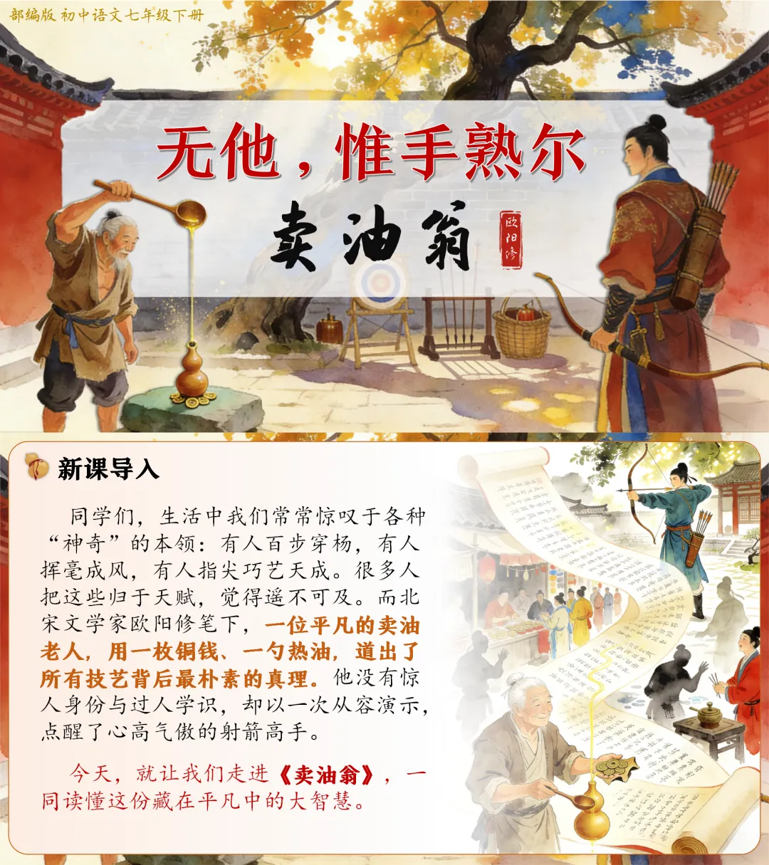 >七年级下册语文《卖油翁》精品课件和教学设计,思路清晰!