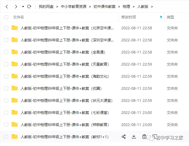 第2步:点击关注公众号【初中学习之家】,关注后发送关键词 人教版初中物理课件
