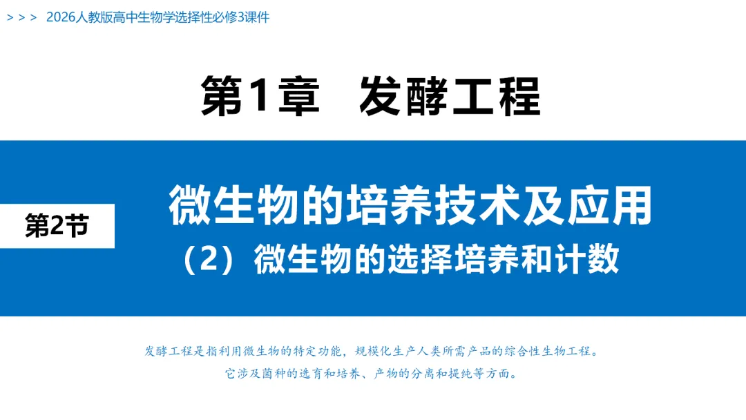 >【PPT课件】高中生物学选择性必修3:§1.2 微生物的培养技术及应用(2)微生物的选择培养和计数 | 新课(2026版)