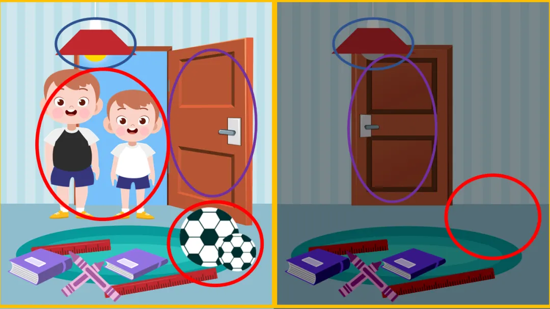 灯亮和暗(开和关);门开和关(打开和关闭);球&人有和无;房间亮和暗。