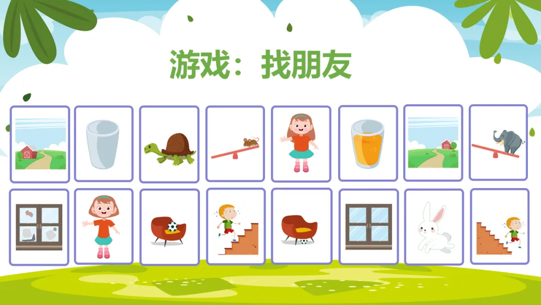 1.过渡语:双胞胎兄弟很开心能认识聪明的大家,想要和大家玩一个新游戏【找