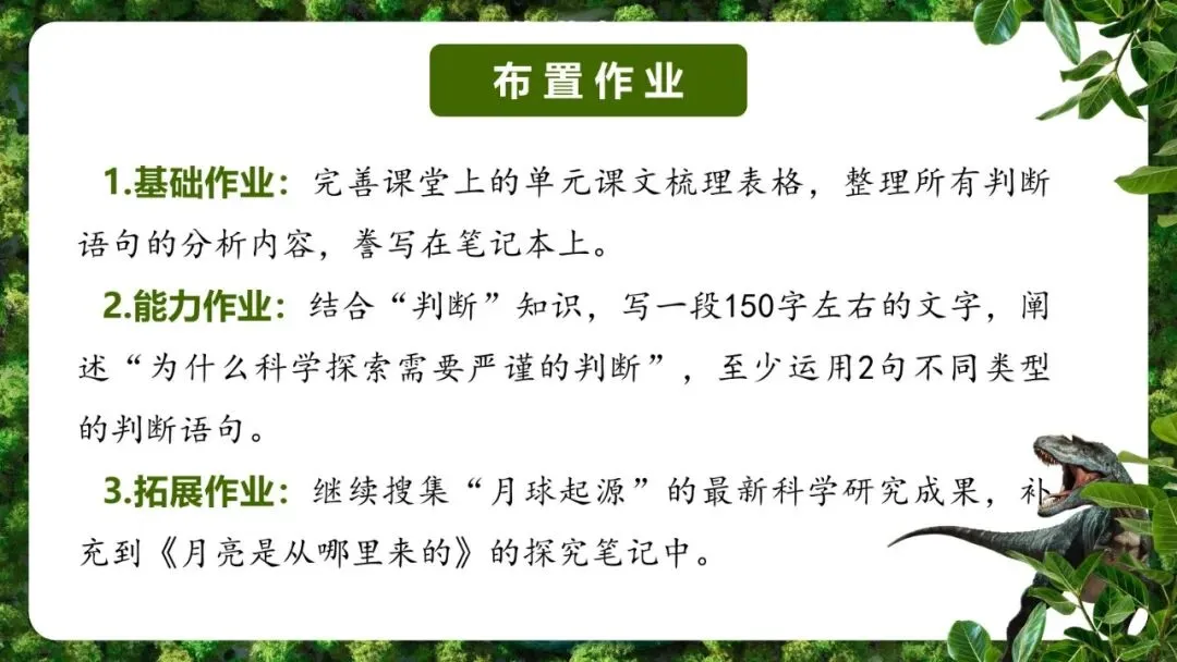 同学们,在过去的这几节语文课里,我们仿佛经历了一场奇妙的科学漫游:我们聆听了草木枯荣的大自然语言,在南极冰雪下发现了恐龙的踪迹,用被压扁的沙子还原了6500万年前的星际撞击,探寻了百年不休的月球身世之谜,还从粗糙的岩石上抚摸到了时间的脚印。这些文章不仅告诉了我们“是什么”,更告诉了我们“为什么”。今天,就让我们把这些散落的“科学珍珠”串联起来,开启我们的“阅读综合实践”之旅。