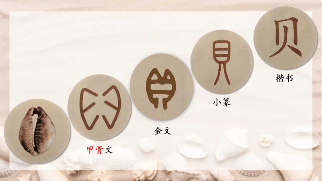 预设:学生汇报甲骨文中的 “贝” 字像一种海贝的样子。