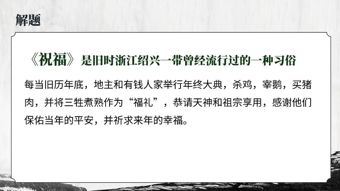 本期更新的课件为统编高教社版中职语文基础模块下册第三单元《祝福》,共53页。