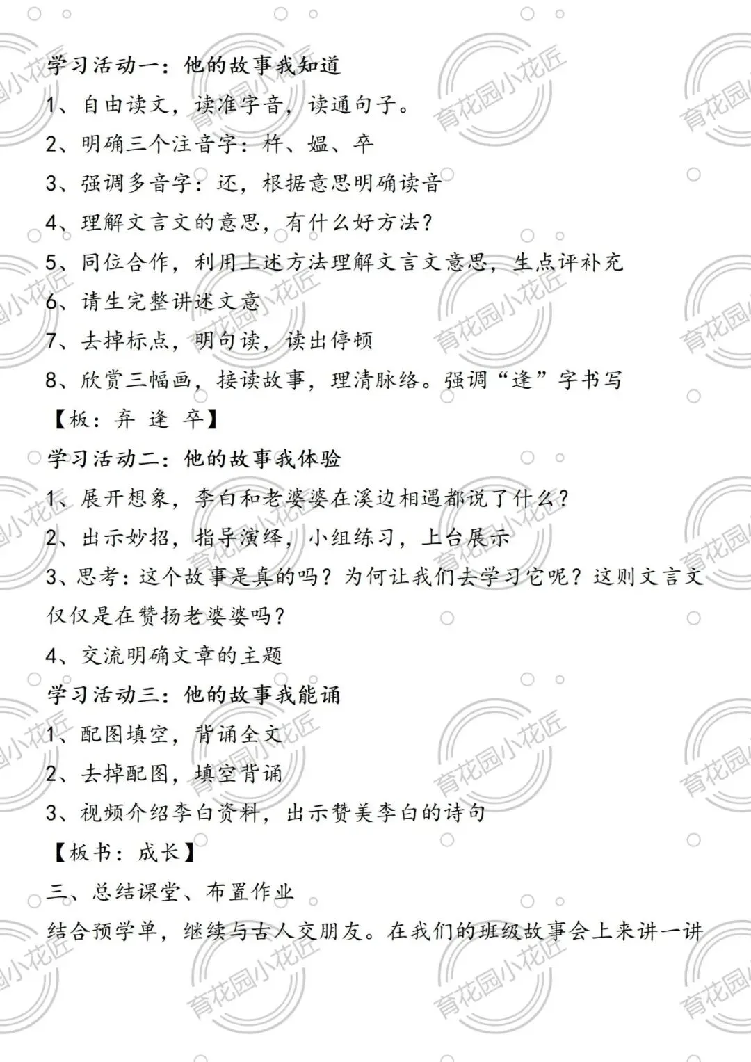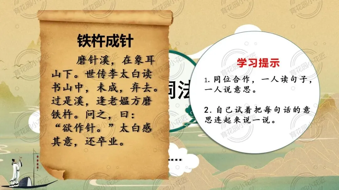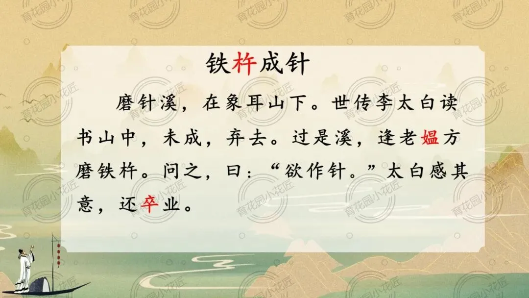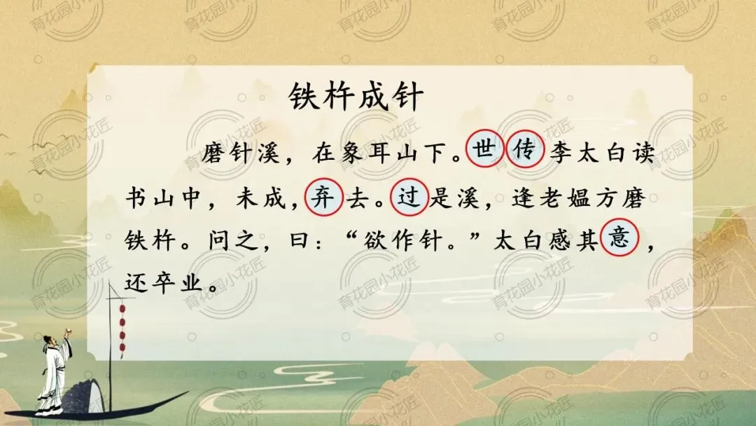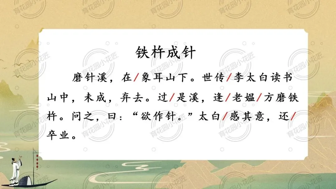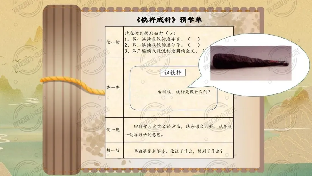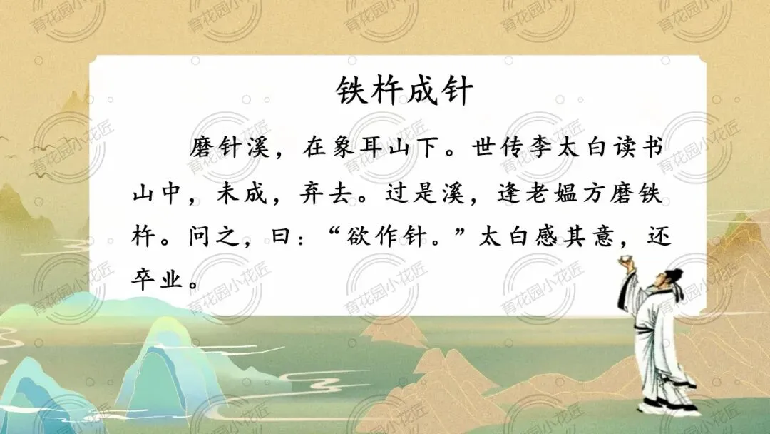 课堂充分凸显学生主体地位,以同位合作、情景演绎、思辨讨论等多元形式,引导学生从文本走向精神内核。同时以李白成长为脉络,将文言学习与文化传承深度融合,既让学生读懂“铁杵成针” 的坚守,更实现了传统文化浸润,为小学中段文言文教学提供了极佳范本。