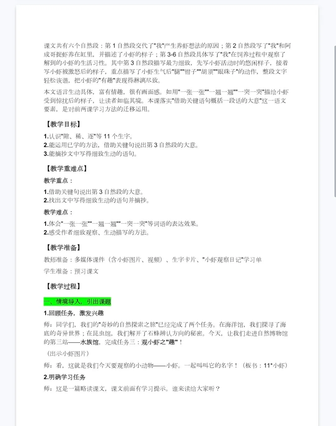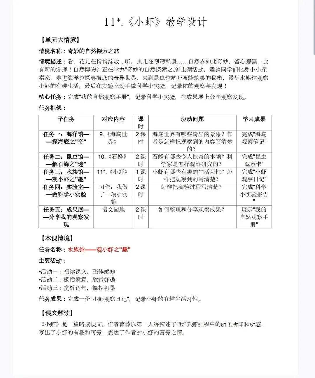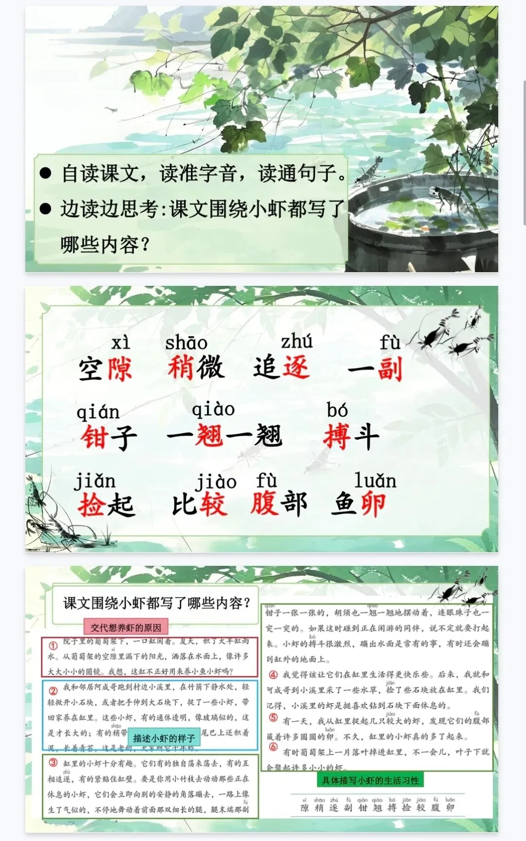 【新课标精品课件】三年级下《3.11小虾》课件+教案