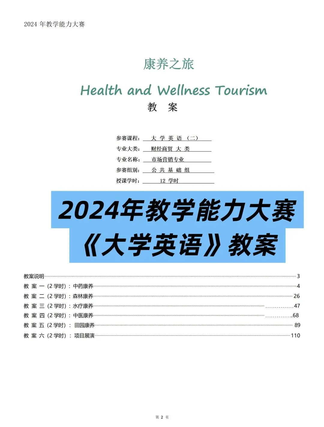 教学能力大赛公共基础组大学英语《康养之旅》教案