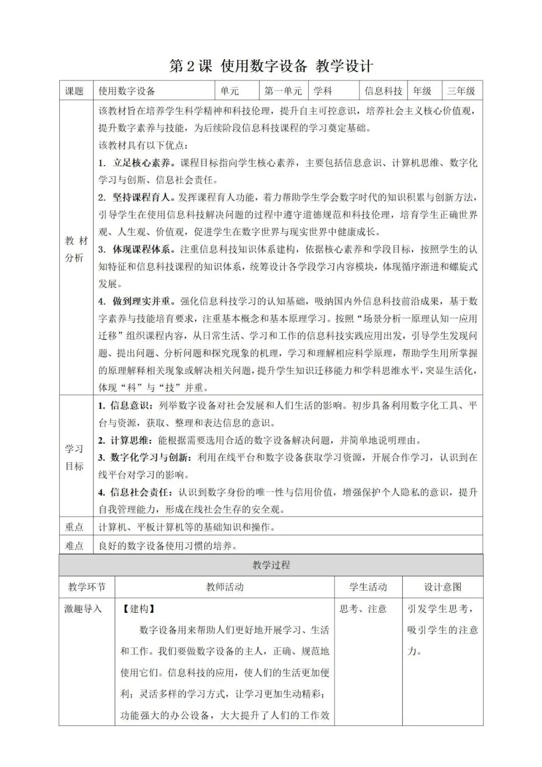 人教版小学信息科技三年级全一册教案+课件