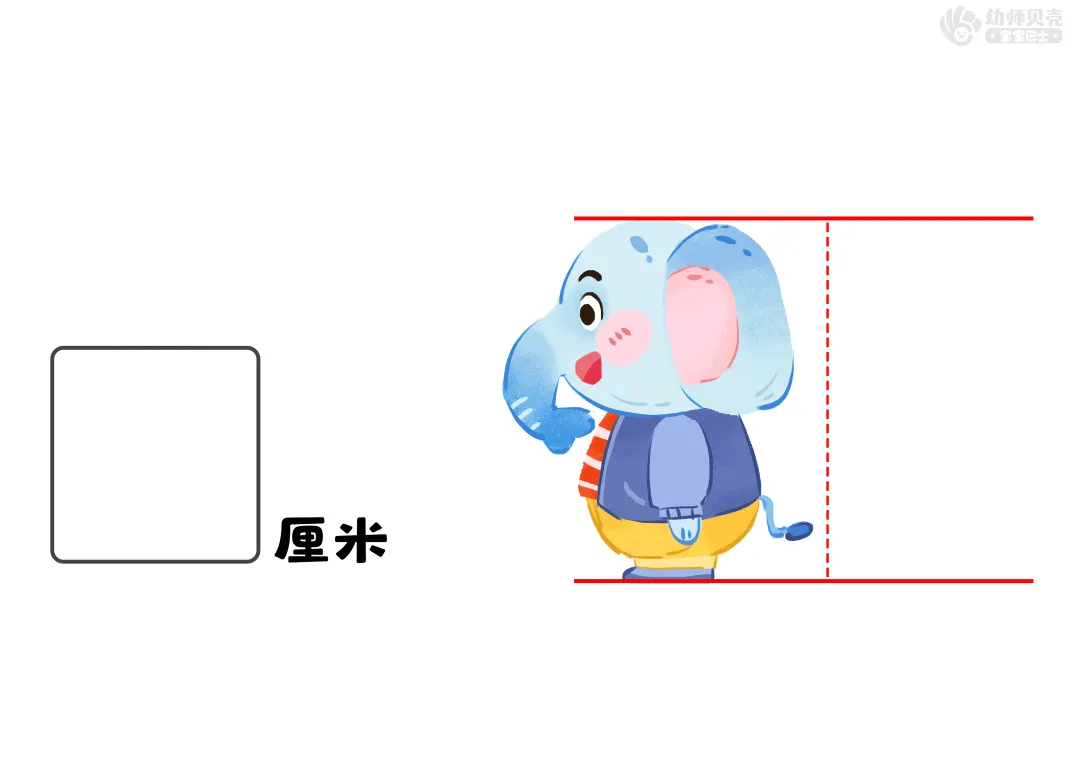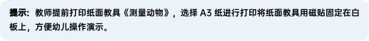 3.出示纸面教具《测量动物》,邀请个别幼儿上台操作,尝试用厘米尺测量长度。