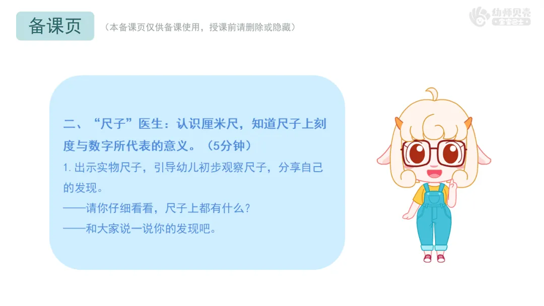 二、“尺子”医生:认识厘米尺,知道尺子上刻度与数字所代表的意义。(5分钟)