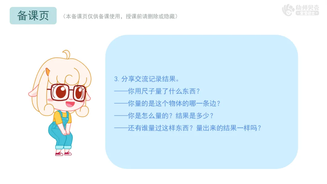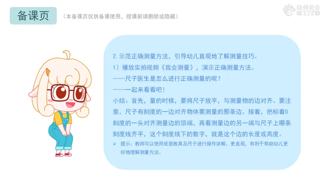 2.示范正确测量方法,引导幼儿直观地了解测量技巧。