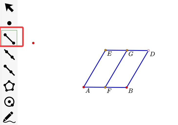 4.选中左边菜单栏的线段工具,连接“GF”线段。