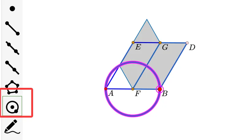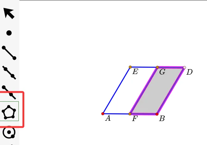 5.利用多边形工具,依次点击D、G、F、B、D,围成四边形。