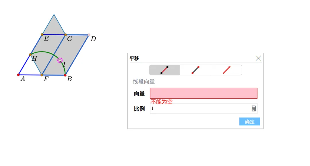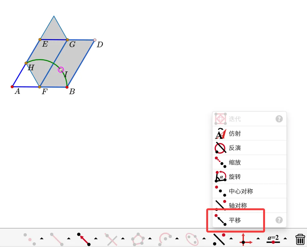 12.点击I点,选中平移,弹出窗口后选第一个,双击线段“DB”,就会生成点K。