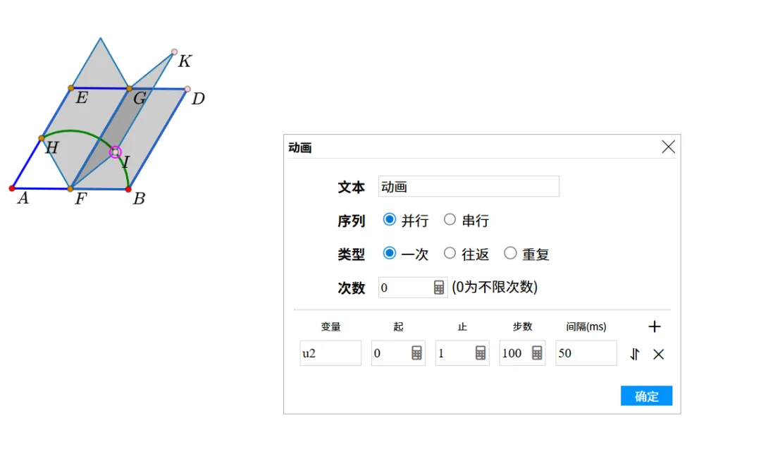 14.点击点I,选中“动画”,弹出窗口,点“确定”。生成动画按钮后,点击播放,就能动啦!