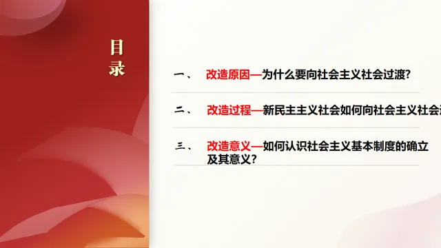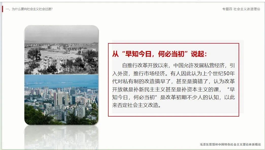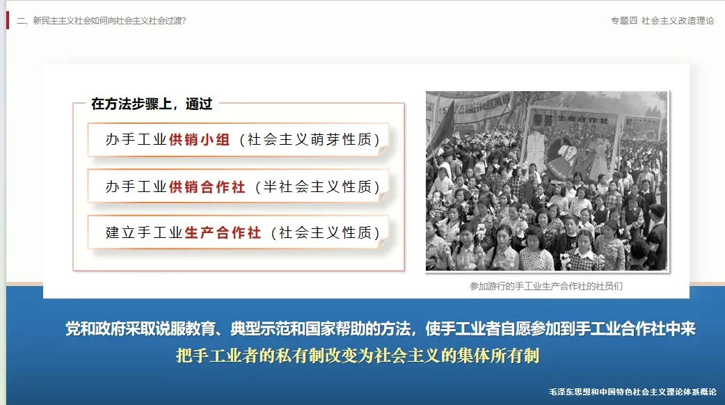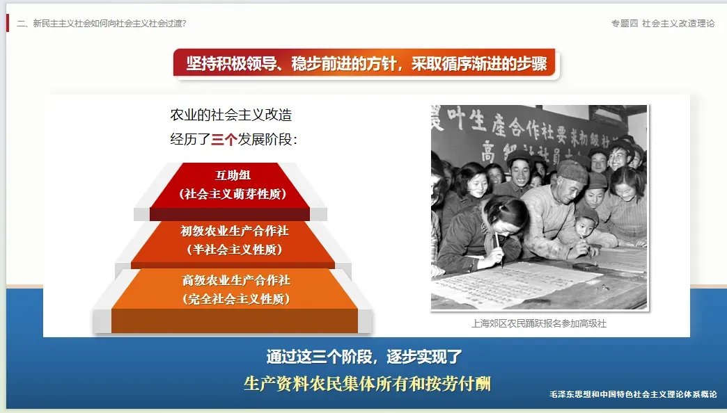 专题第三章社会主义改造理论(案例持续更新中,课件+稿子+视频),共3.1万字,167页PPt。工作室有新思想、共同体概论、国家安全教育、毛中特、马原、史纲、德法等逐字稿和说课稿,可定制比赛课件PPt,论文、课题、微课等内容。需要完整版,可以添加微信qingjiaosizheng999