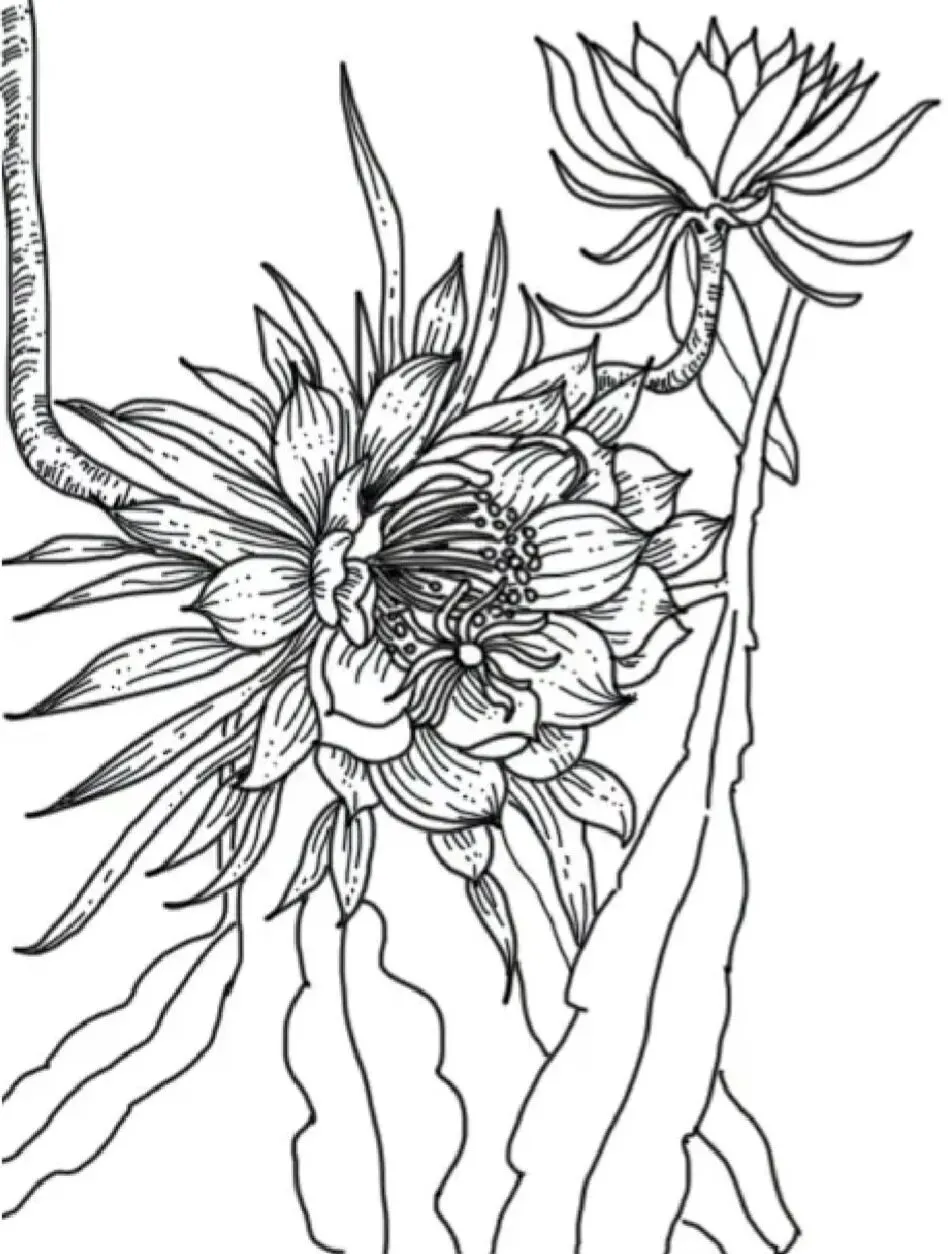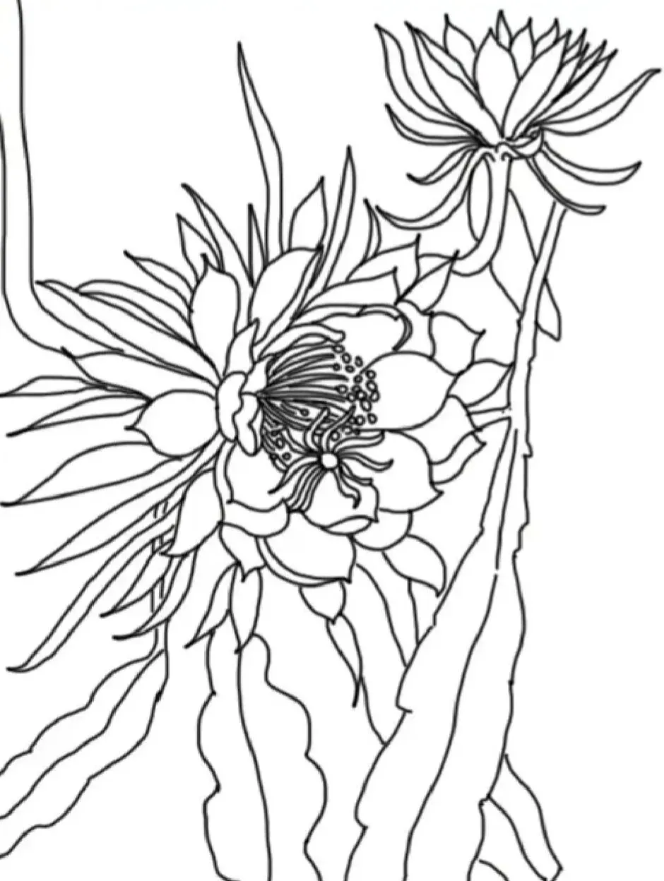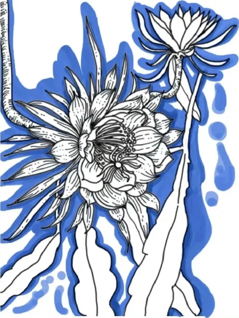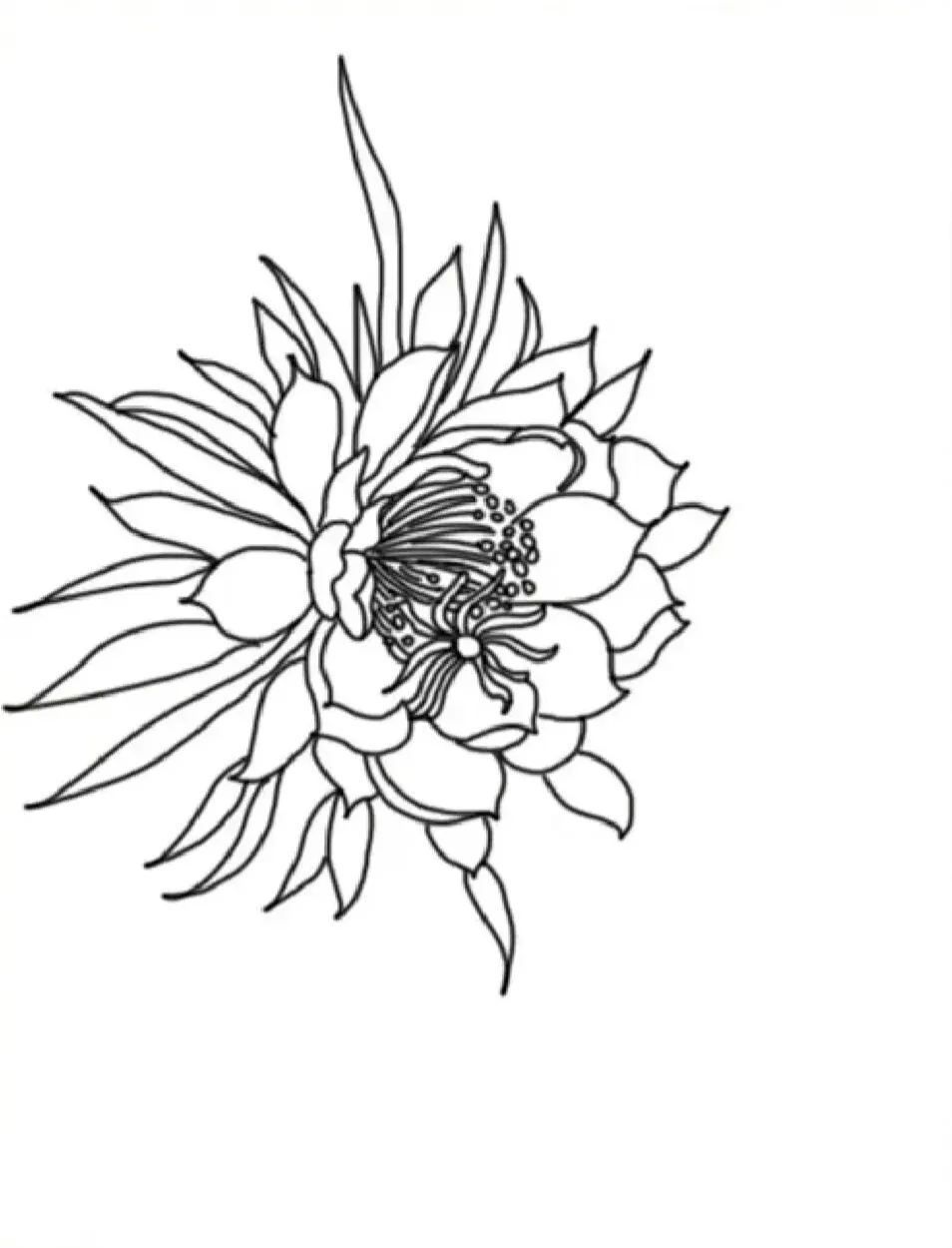 3.学会创意构图与色彩点缀,完成一幅完整的昙花线描作品
