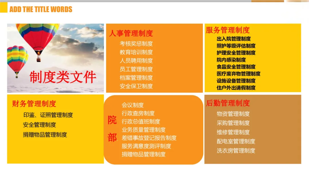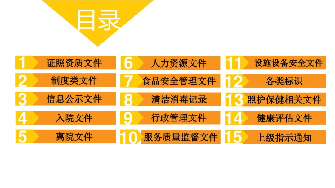其二,系统化梳理全流程制度与文件体系,覆盖行政、财务、护理、食品安全等全领域,让机构日常管理有章可循,理顺运营流程;