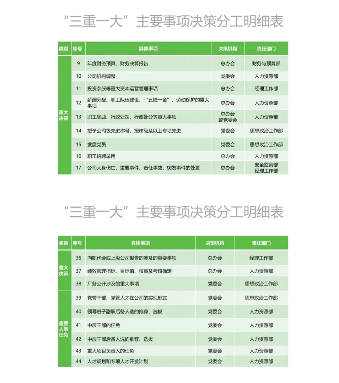 “三重一大”决策事项的主要内容