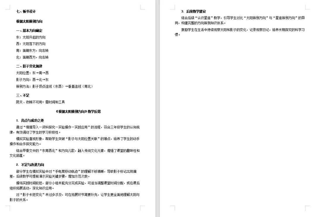 【科学教案课件】新教材教科版版小学科学三年级下册全册文本配套教案(含逐字稿+反思)第1课《根据太阳辨别方向》