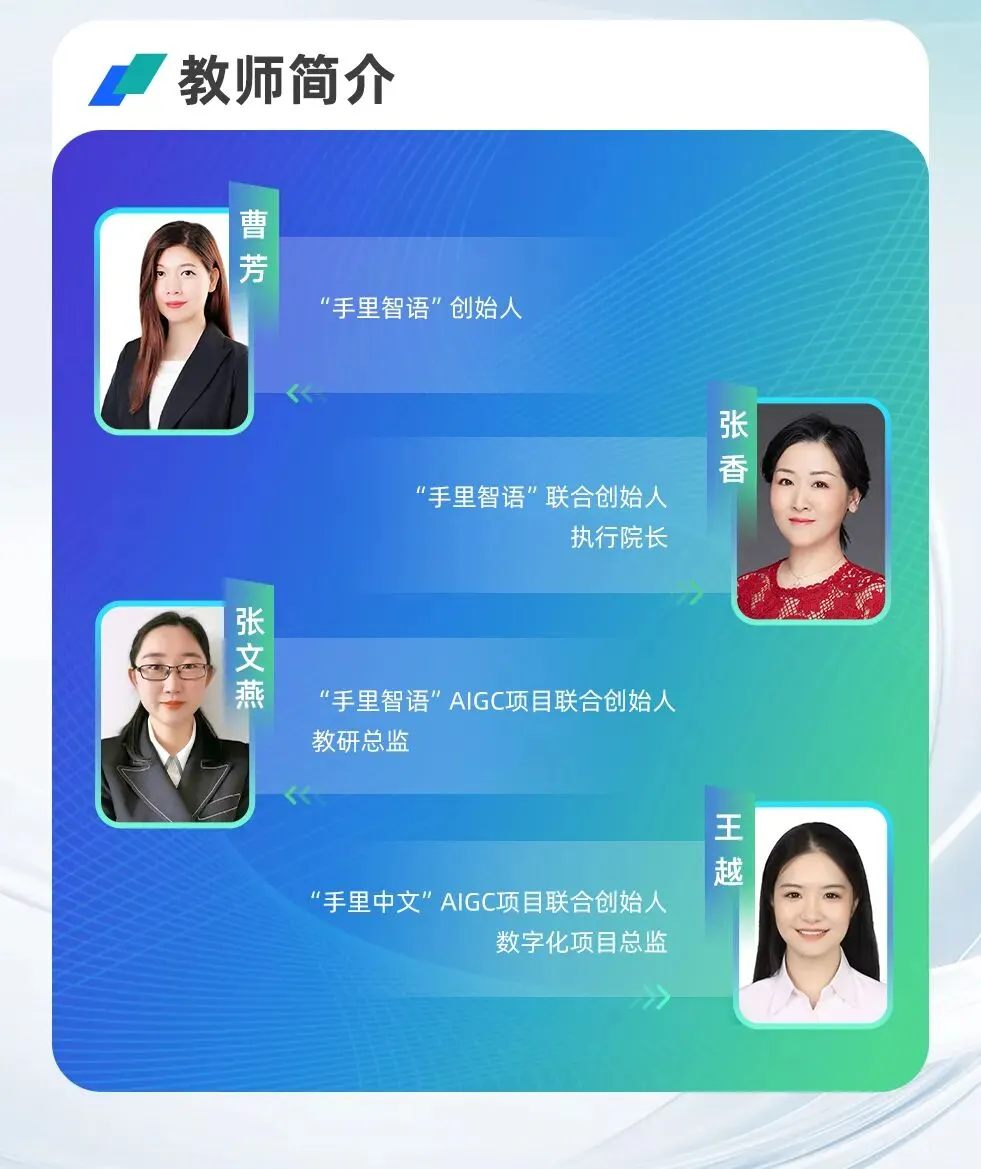 在教育数字化转型的关键阶段,AIGC已成为国际中文教师提升备课效率、优化教学资源的重要工具。为进一步帮助广大国际中文教师切实掌握AIGC在课件制作中的实操方法,中文联盟与手里智语联合推出“AIGC工具辅助国际中文教学课件制作(进阶)专题工作坊”。本工作坊为国际中文教师证书持证人员继续教育学分课程。工作坊课程详细信息如下: