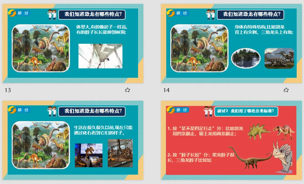 >【科学教案课件】新教材教科版版小学科学二年级下册全册表格配套课件(含逐字稿+详细反思)第1课《恐龙的故事》