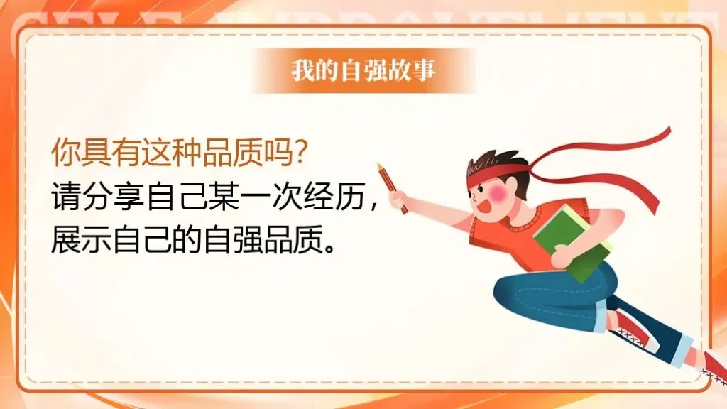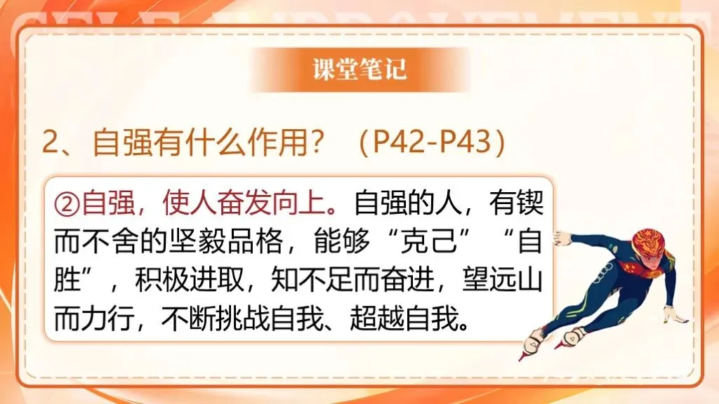 道德修养:掌握自强的作用,能够不断挑战自我,培养坚毅的品德。