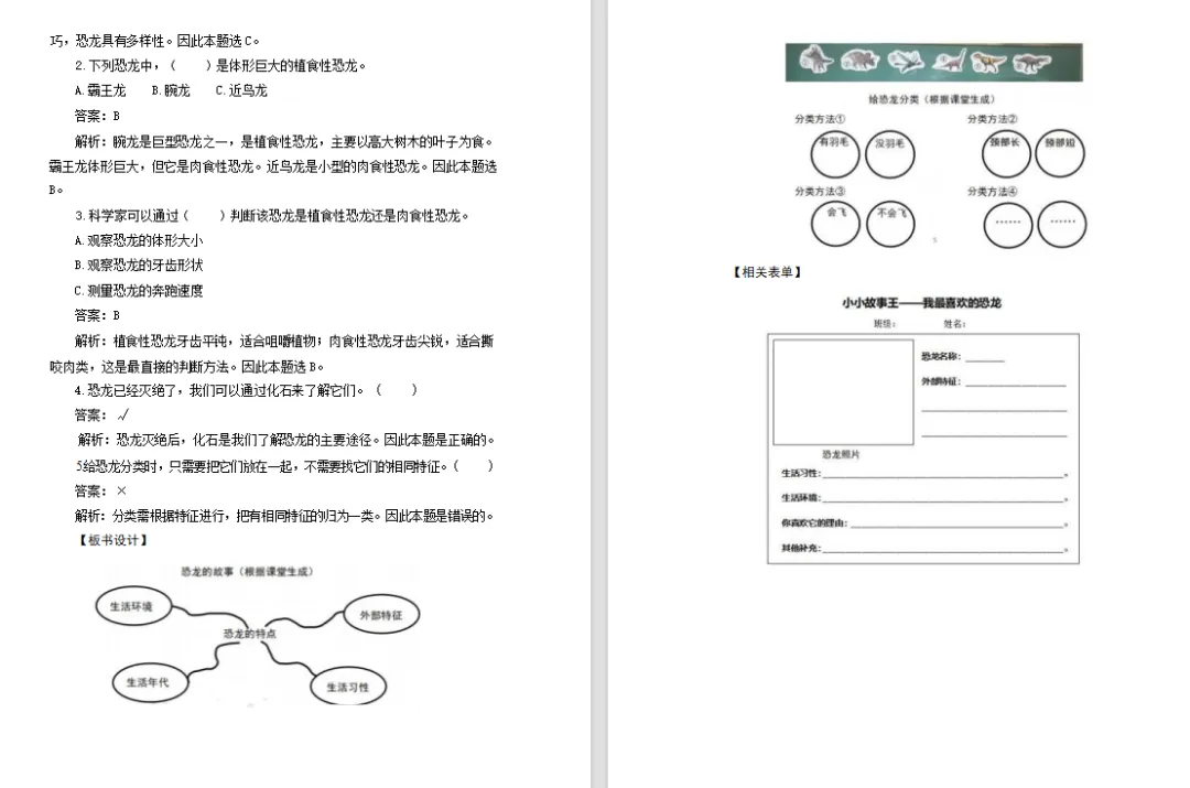 >【科学教案课件】新教材教科版版小学科学二年级下册全册文本配套教案(含视频)第1课《恐龙的故事》