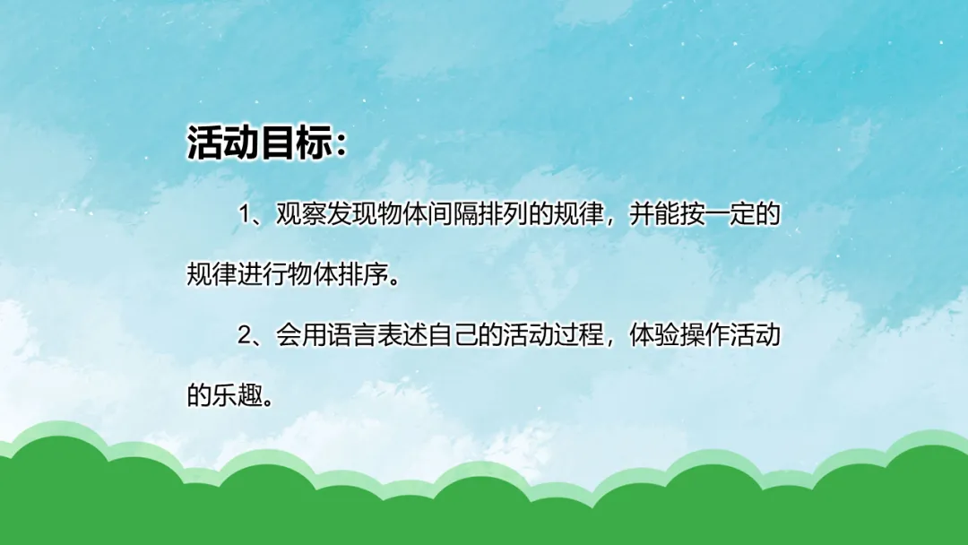 1、观察发现物体间隔排列的规律,并能按一定的规律进行物