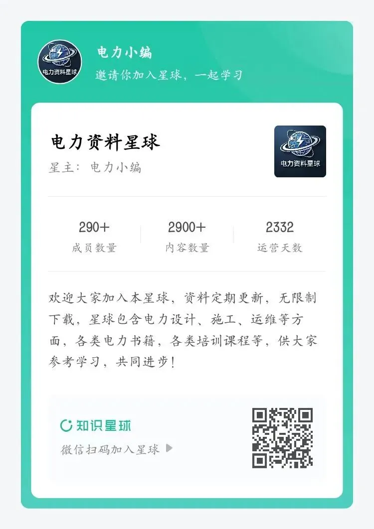 公众号上所有资料都可在星球上下载,目前星球已更新上万份电力资料,资料每日更新,无限制下载,星球资料包含电力设计、施工、运维等方面,各类电力书籍,各类培训课程等,供大家参考学习,共同进步!