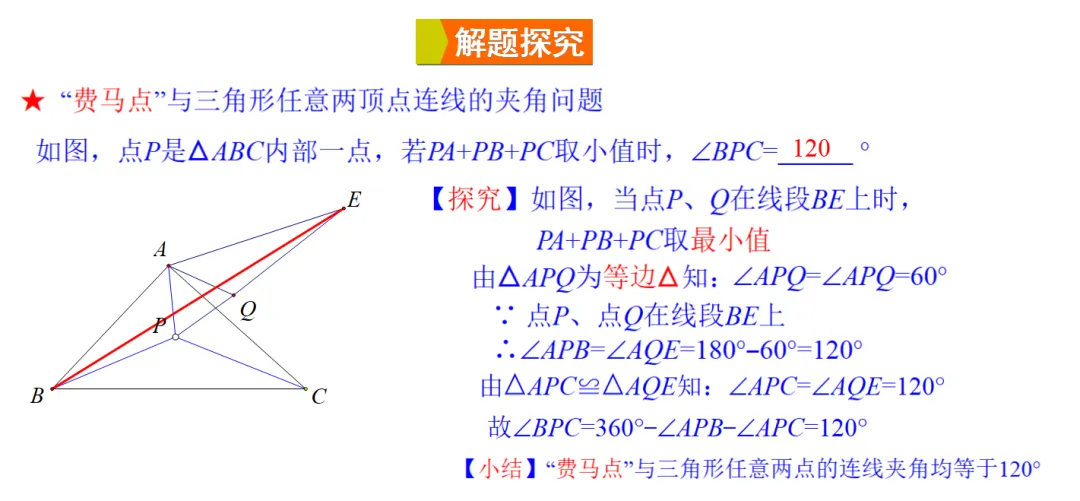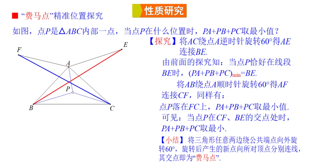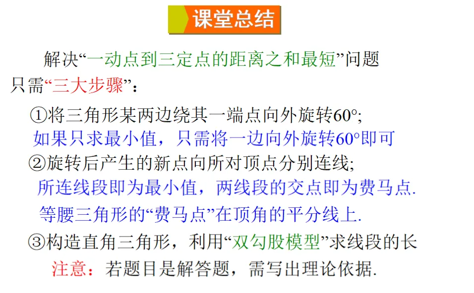 费马点相关性质考点近几年中考爱出现,为让2026年中考孩子能取得更好的成绩,这个周潜心研究并制作好该专题课件,以下截屏是该课件内容:通过七年多的努力,我制作以下章节的精品课件:
