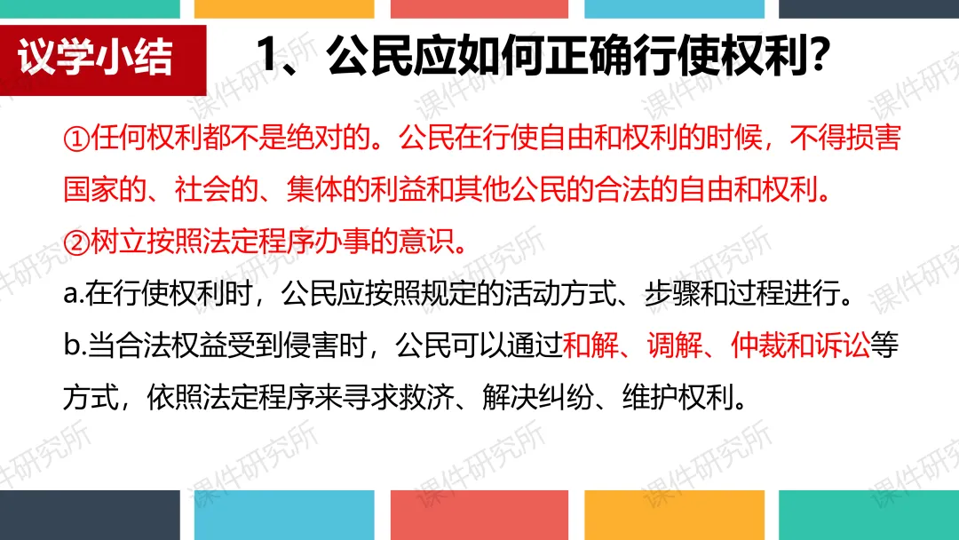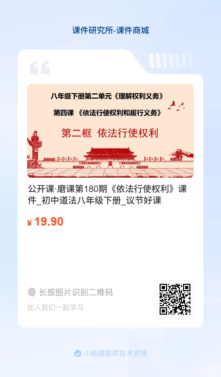 今天要分享的是第180期磨课,八下新教材课件《依法行使权利》,老师刚刚上完公开课,课堂效果非常不错。