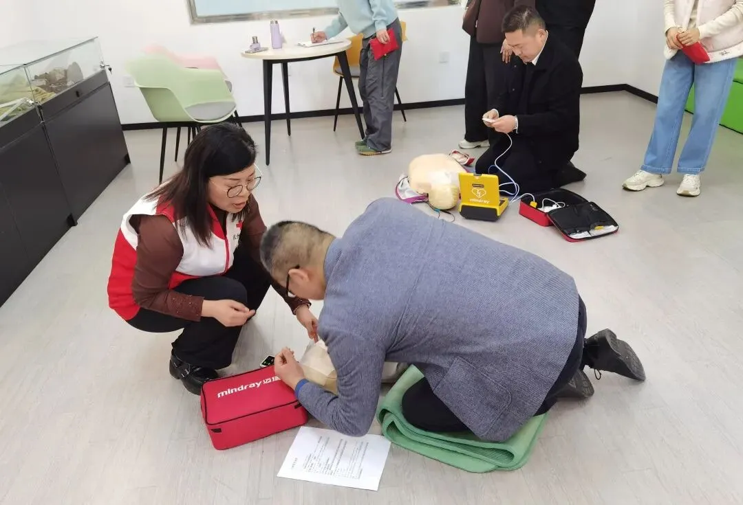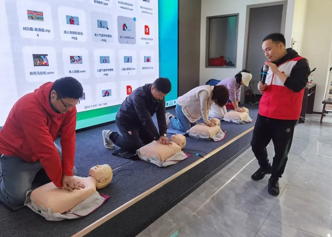 随后,朱医生围绕心源性猝死的急救要点、常见意外伤害处置、心肺复苏实操、AED设备使用等核心内容展开细致教学,通过理论讲解、示范操作、互动练习相结合的方式,让学员们快速掌握使用急救技巧。