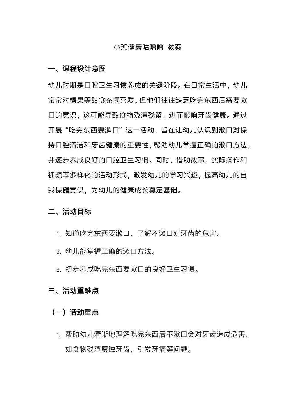 小班健康《咕噜噜(小熊拔牙)》教案