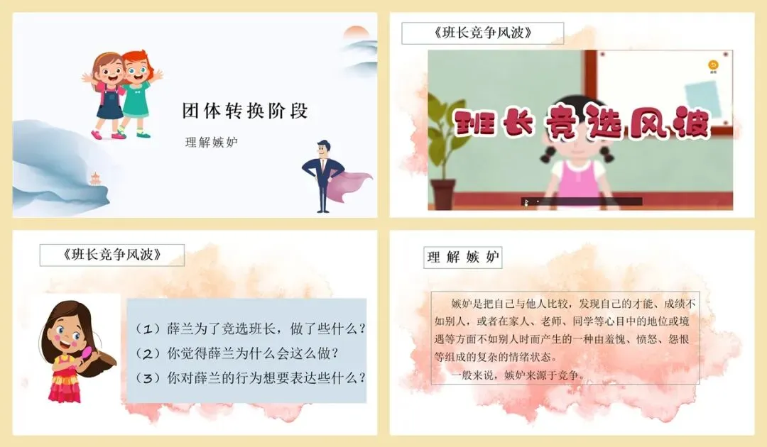 取材源于学生的生活场景,通过视频的方式呈现,让学生直观地认识嫉妒的心理。