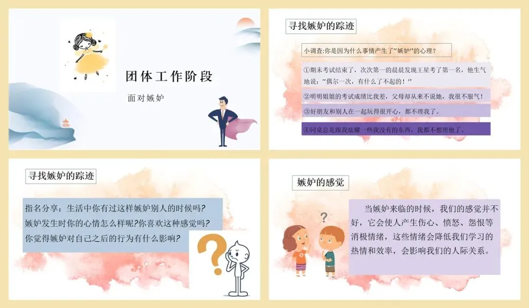 本课旨在帮助学生正确理解嫉妒,在活动中觉察嫉妒时带来的负面影响,调试嫉妒心理与行为,尝试将嫉妒转化为欣赏,超越嫉妒,从而促进学生身心健康成长。