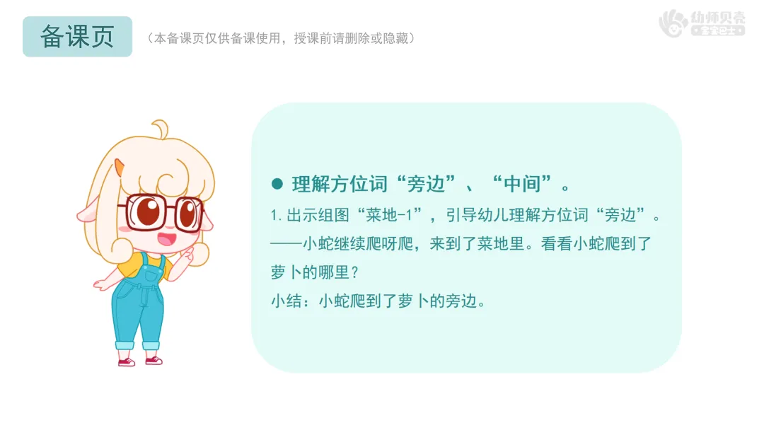 ——现在,小蛇爬到了哪里?(萝卜/白菜的旁边)