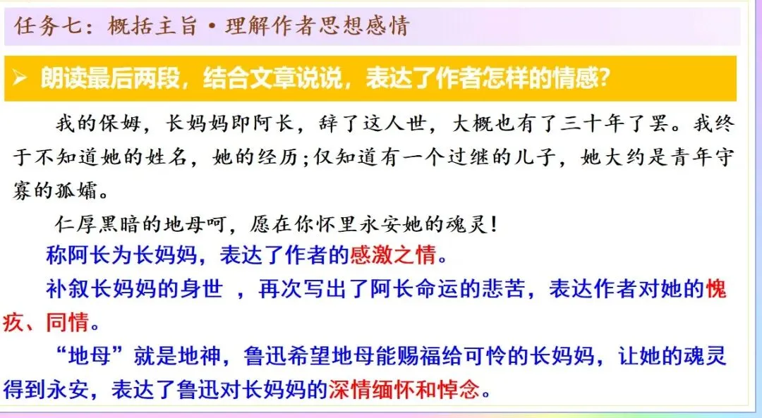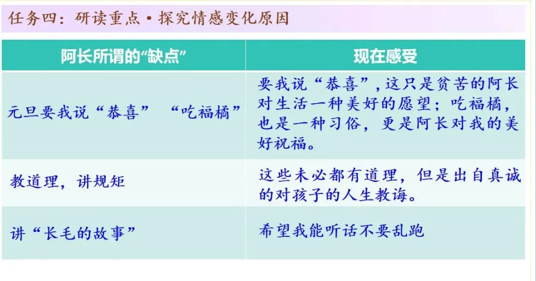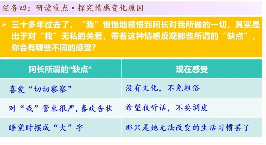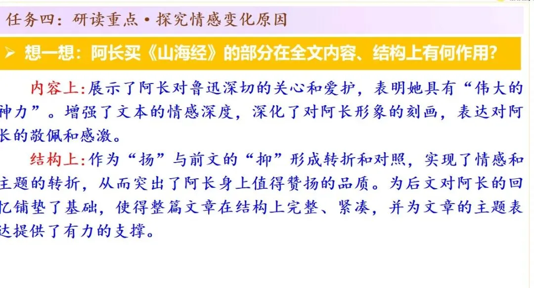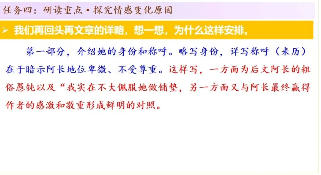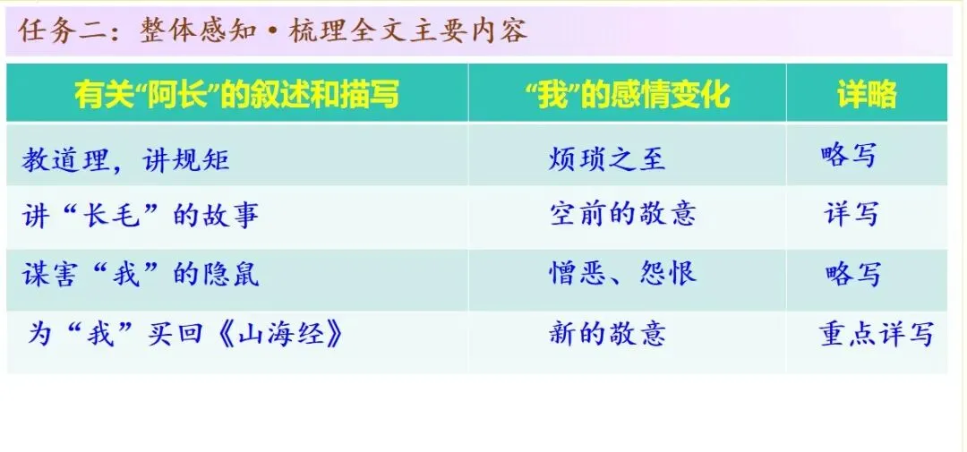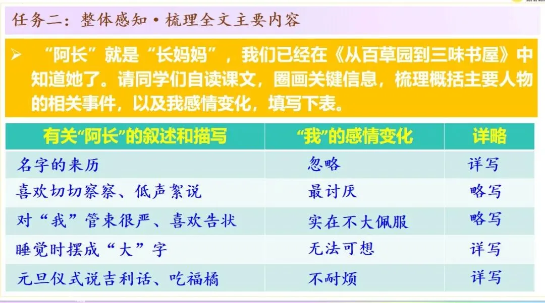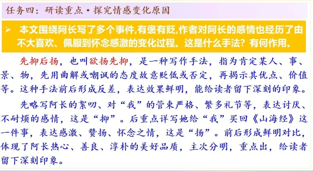 2.感受文章先抑后扬的写法,理解作者对阿长的感情