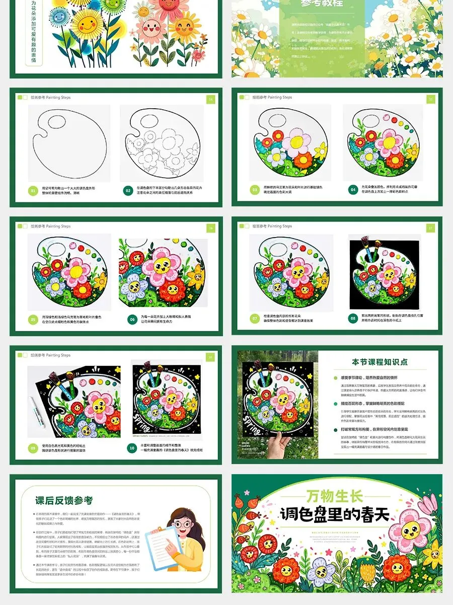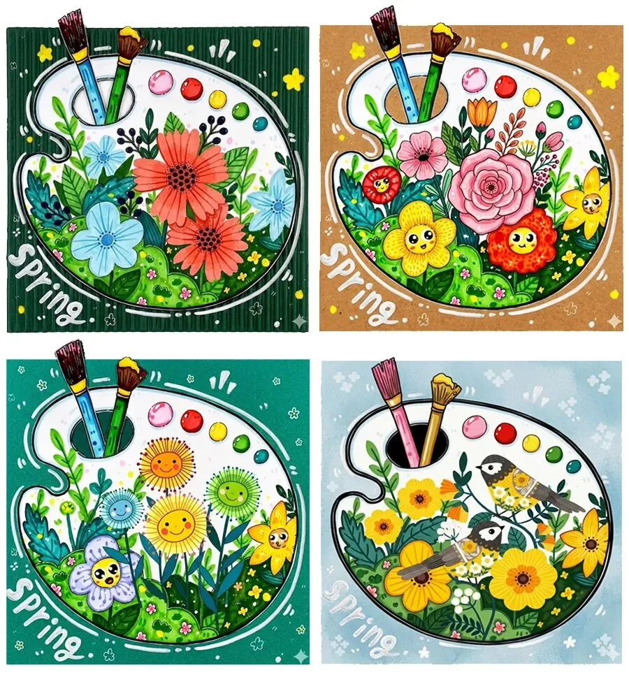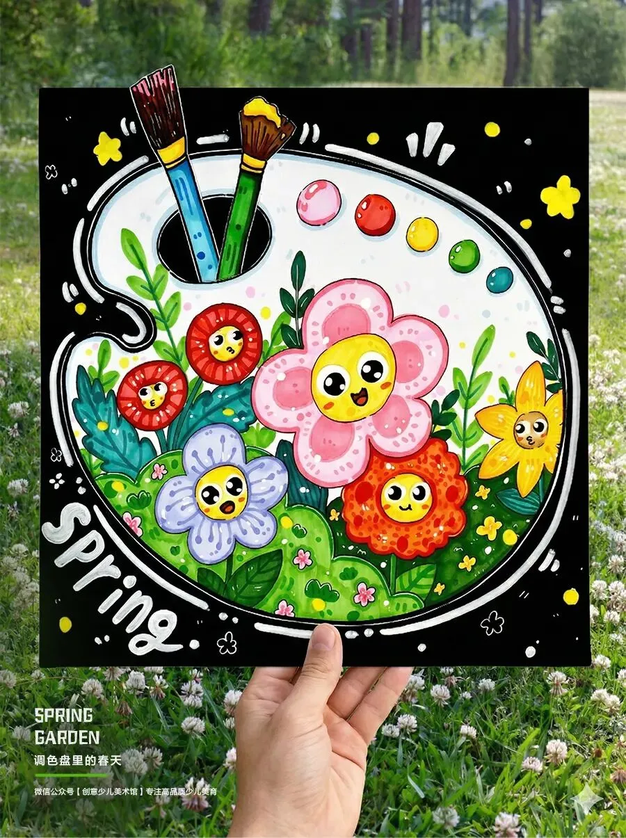 今天,我们就要来做一件特别有创意的事情——不在方方正正的纸上画画,而是在一个特别的形状里创作——调色盘!让我们一起把春天“种”进调色盘里,用丰富的颜色和有趣的花朵,打造一个属于自己的春日秘密花园吧!