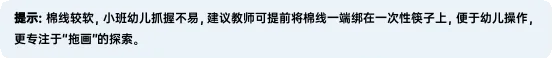 l重点:乐于用拖画(棉线)、点画(棉签)的方法玩色玩墨,体验创作的快乐。