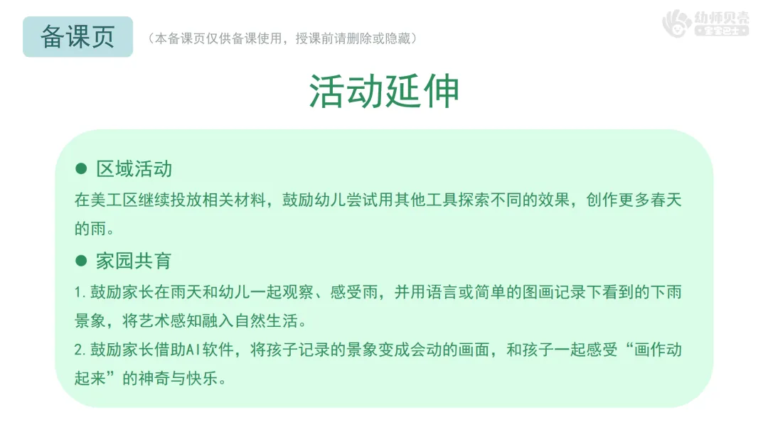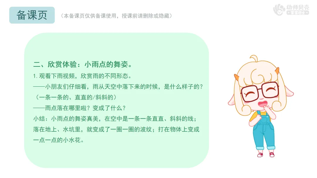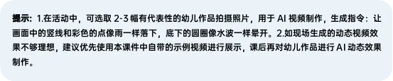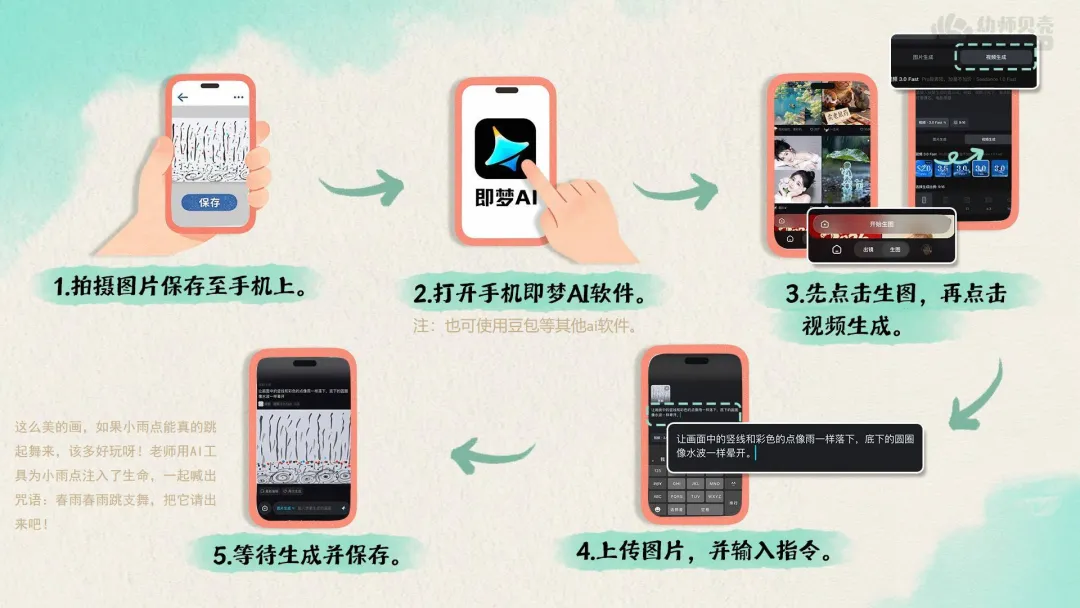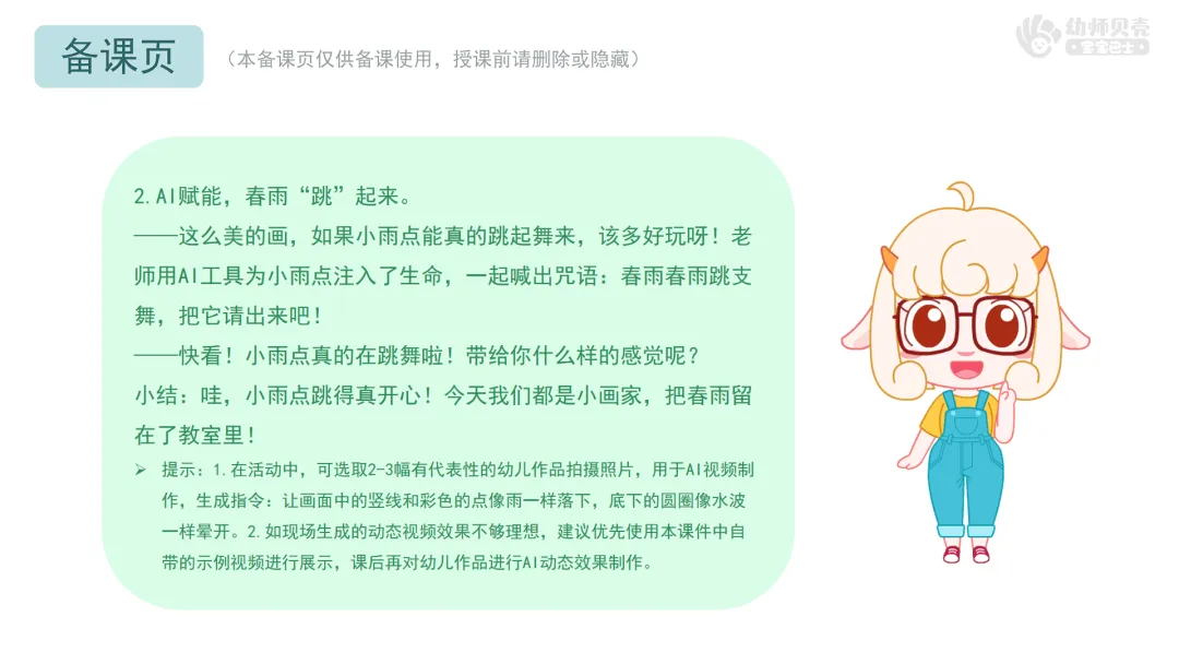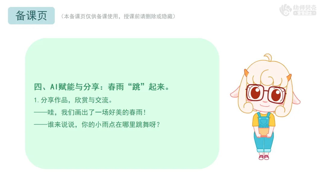 ——这么美的画,如果小雨点能真的跳起舞来,该多好玩呀!老师用AI工具为小雨点注入了生命,一起喊出咒语:春雨春雨跳支舞,把它请出来吧!